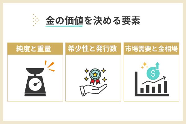金貨の価値は「純度・重量・希少性・市場需要」で決まる