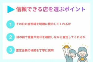こちらのコラムでは初めての方でも安心して金を売却できるコツが書かれています!こちらもご覧くださいませ!