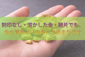 でも結論から言うと、刻印がない金・溶かした金・金の破片でも、金としての買取は可能なケースが多いです。