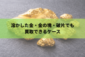 ただし、金の買取店では、見た目に惑わされず中身を確認します。純度が分かれば、溶かした金でも買取できます。