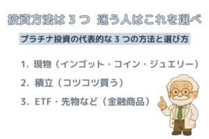 プラチナ投資のやり方は主に3タイプです。