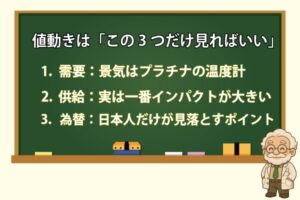 • 判断は「需要・供給・為替」の3つだけ見ればいい