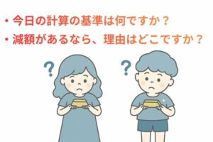 「計算の基準は?」「減額があるなら理由は?」これがあると緊張しても戻れます。