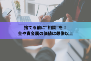 近年、大阪でも断捨離ブームや遺品整理の流れで、貴金属を何気なく処分してしまう方が増えています。