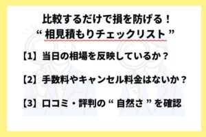 相見積もりを取ることは、少し手間に感じるかもしれません。ですが、数分の行動で3万円以上の差が出ることもあります。