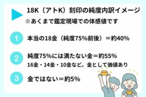 アトKは「18金に少し届かない金」というだけで、多くの場合は金をしっかり含んでいます。